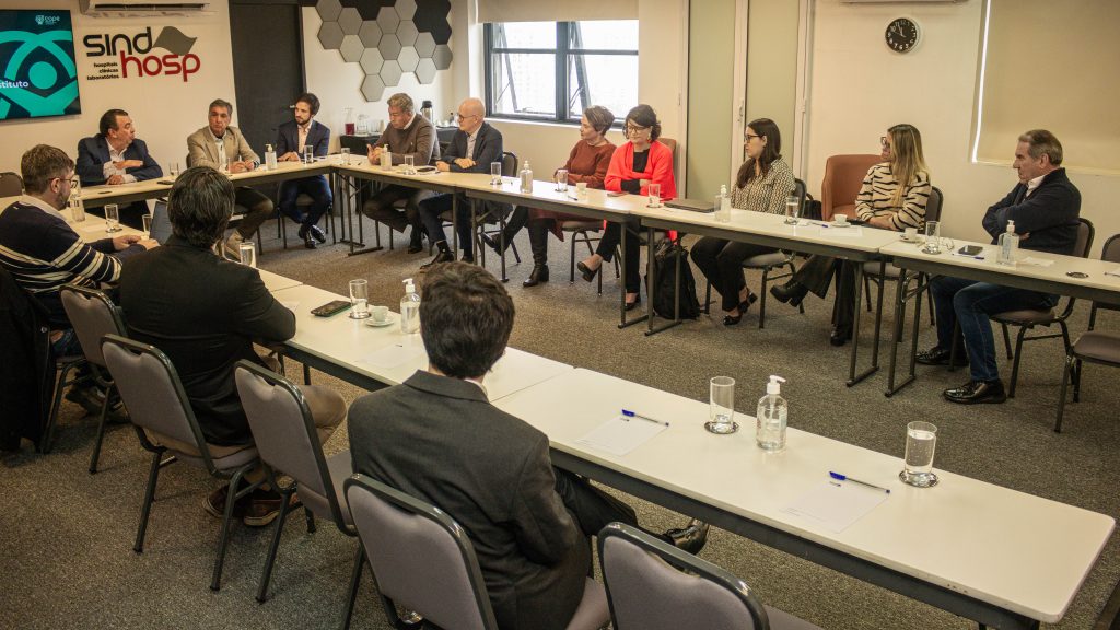 A Câmara de Assuntos Políticos e Estratégicos da FESAUDE se reuniu para discutir a regulamentação e a nova lei de pesquisa clínica e a pareceria entre a entidade e o Instituto unidos Brasil. Na reunião de outubro, a CAPE recebeu a advogada Teresa Gutierrez, sócia do Machado Nunes Advogados, que fez uma apresentação a partir do tema “Pesquisa Clínica: Regulamentação e Nova Lei – Oportunidades para o Setor de Saúde”, e Antonio Castilho, cofundador e vice-presidente do IUB, que falou sobre as perspectivas do Instituto.